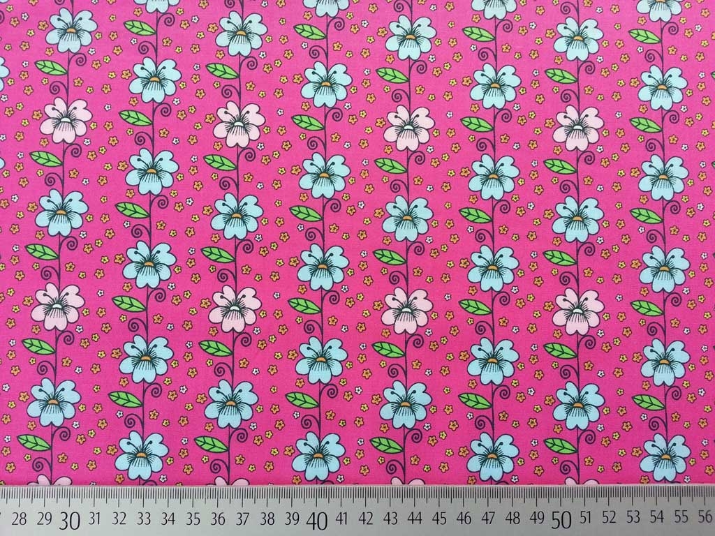 Ein weicher Baumwollstoff in pink mit Blumenranken und Miniblumen. So süß!