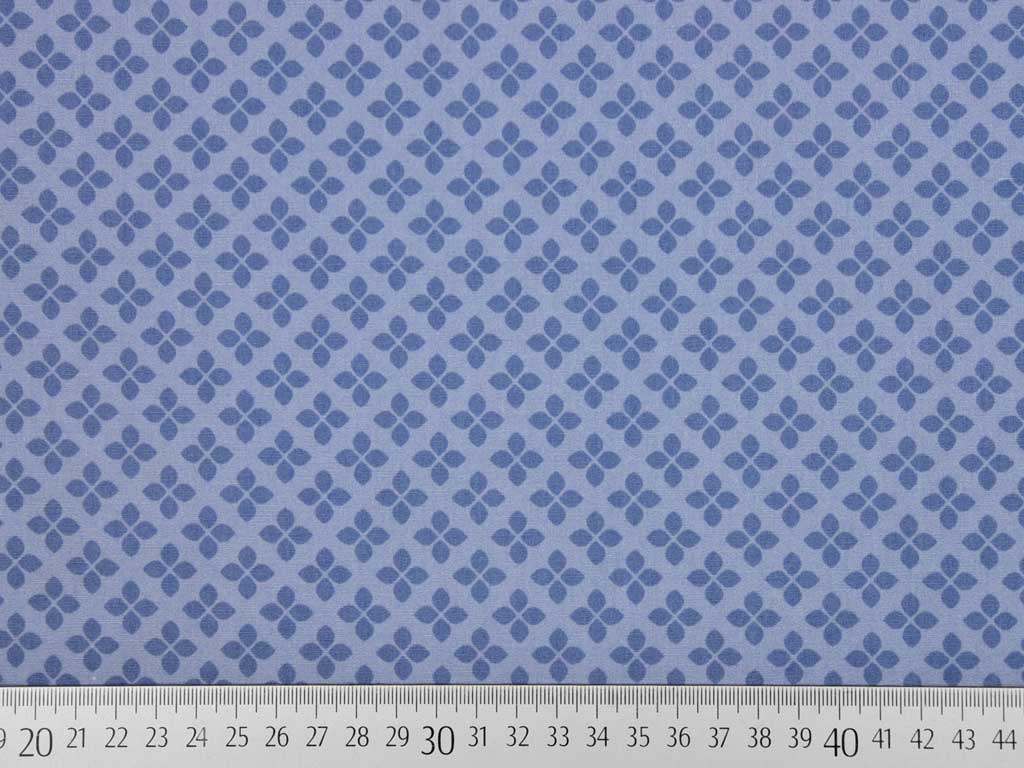 Ein schöner Baumwollstoff in jeansblau mit aufgedruckten Kreuzblumen.