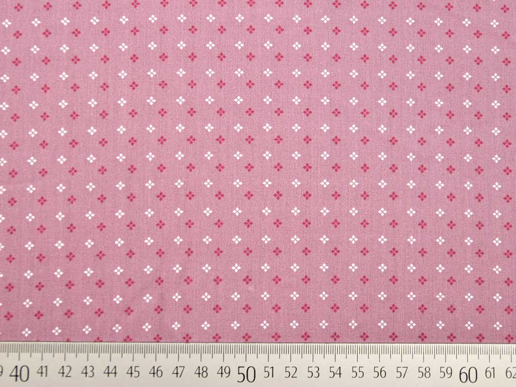 Ein toller Baumwollstoff in altrosa mit kleinen Kreuzblumen in weiß und dunklem altrosa.