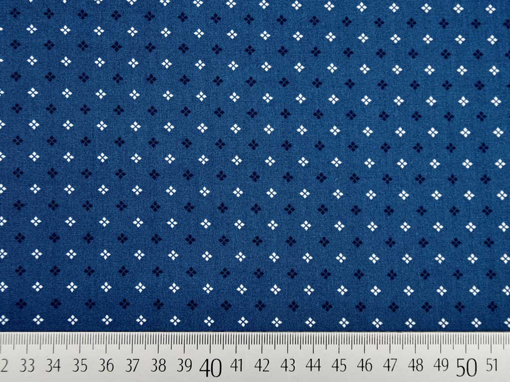 Ein toller Baumwollstoff in indigoblau mit kleinen Kreuzblumen in weiß und nachtblau.
