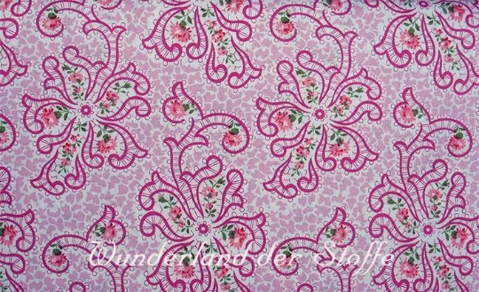 Ein toller Popelin Stoff mit schönen Ranken und Blumen in rosa.