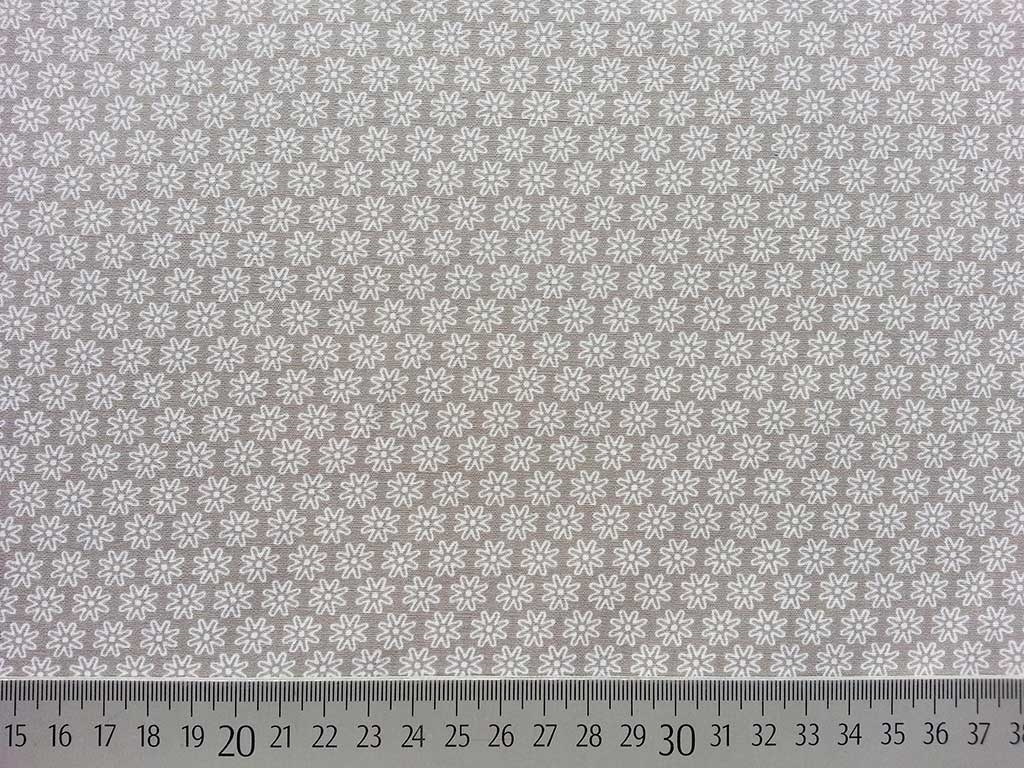 Ein wunderschöner Baumwollstoff mit weißen Streublümchen auf taupe.