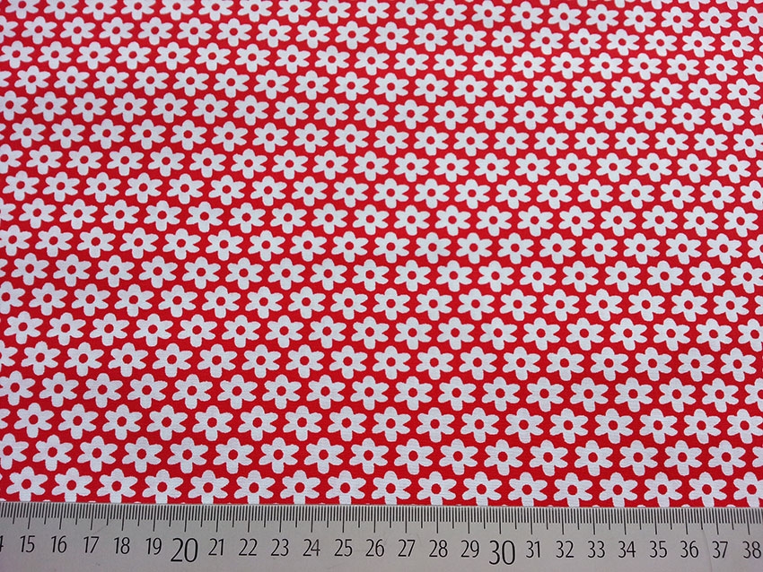 Ein wunderschöner Baumwollpopelin in Rot bedruckt mit weißen Blümchen.