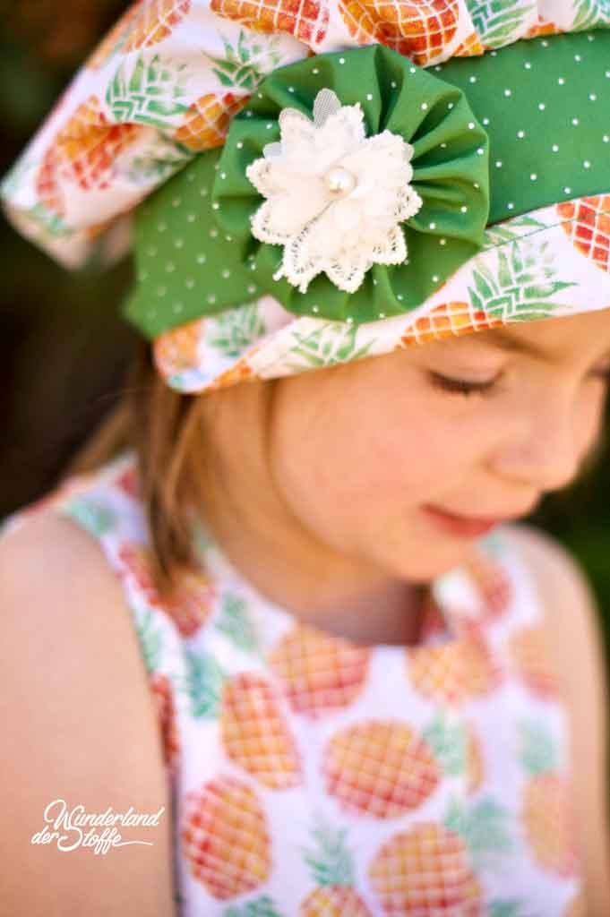 Ein glatter Baumwollstoff (Popelin) in weiß mit leckeren Ananas.