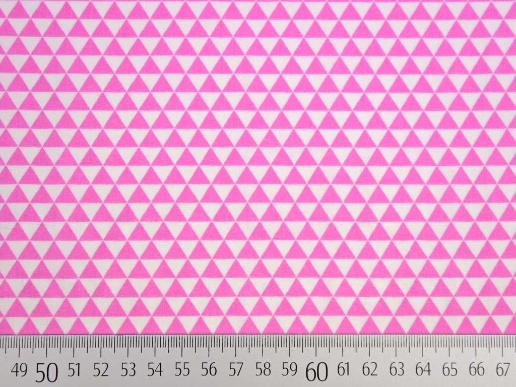 Ein weicher Baumwollstoff in weiß mit glatter Oberfläche und kleinen, rosa Dreiecken.