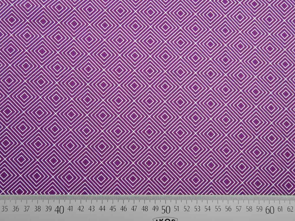 Ein glatter Baumwollstoff in lila mit weißen Quadraten.