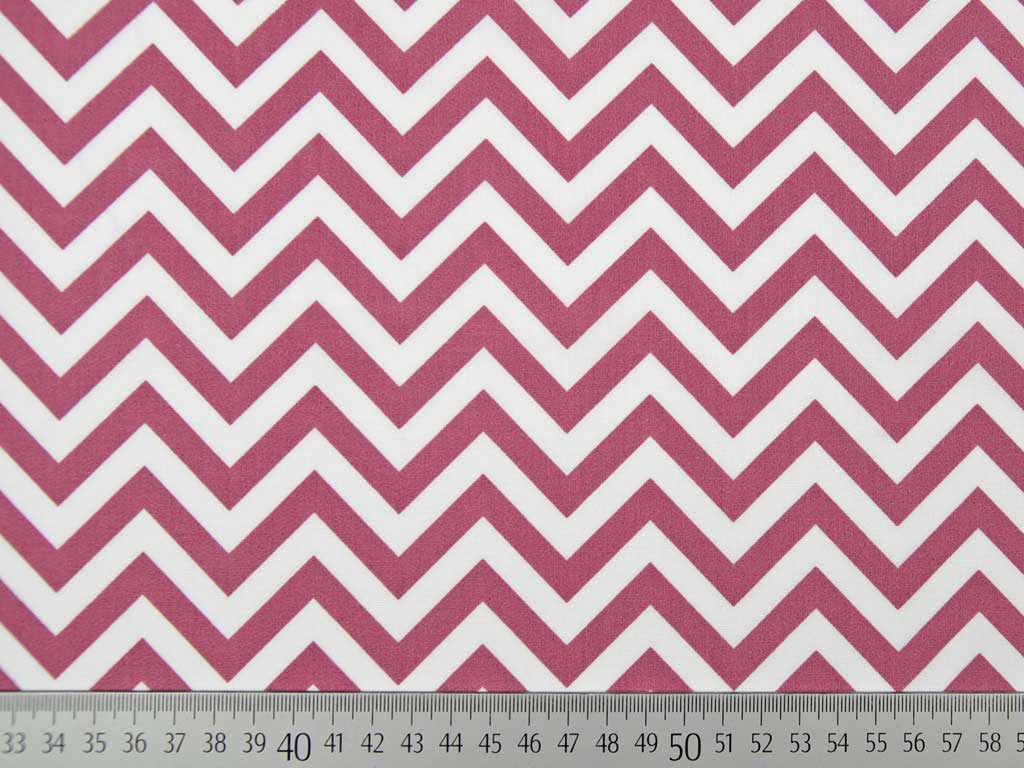 Ein toller Baumwollpopelin in weiß mit dunklem altrosa Zickzackmuster.