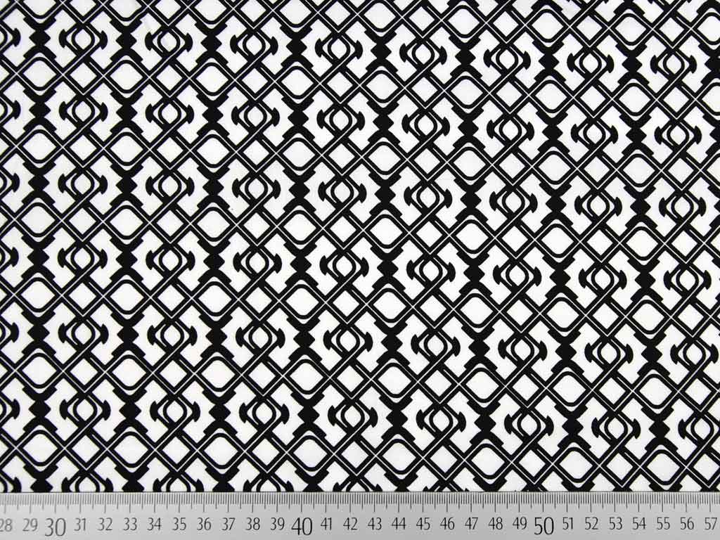 Ein weicher, glatter Baumwollsatin in weiß mit grafischem Muster in schwarz.