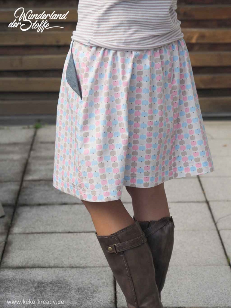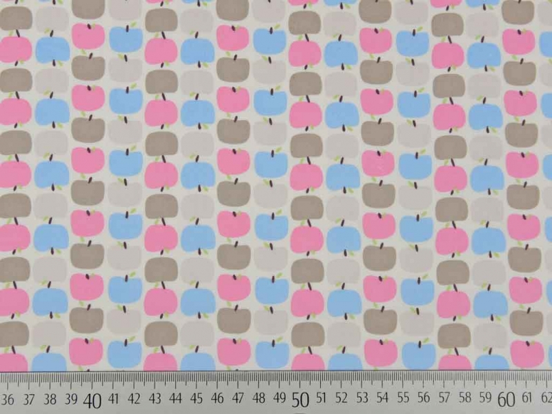 Ein feiner Baumwollpopelin aus biologischem Anbau von C.Paulie in cremeweiß mit pastellfarbigen Äpfelchen.