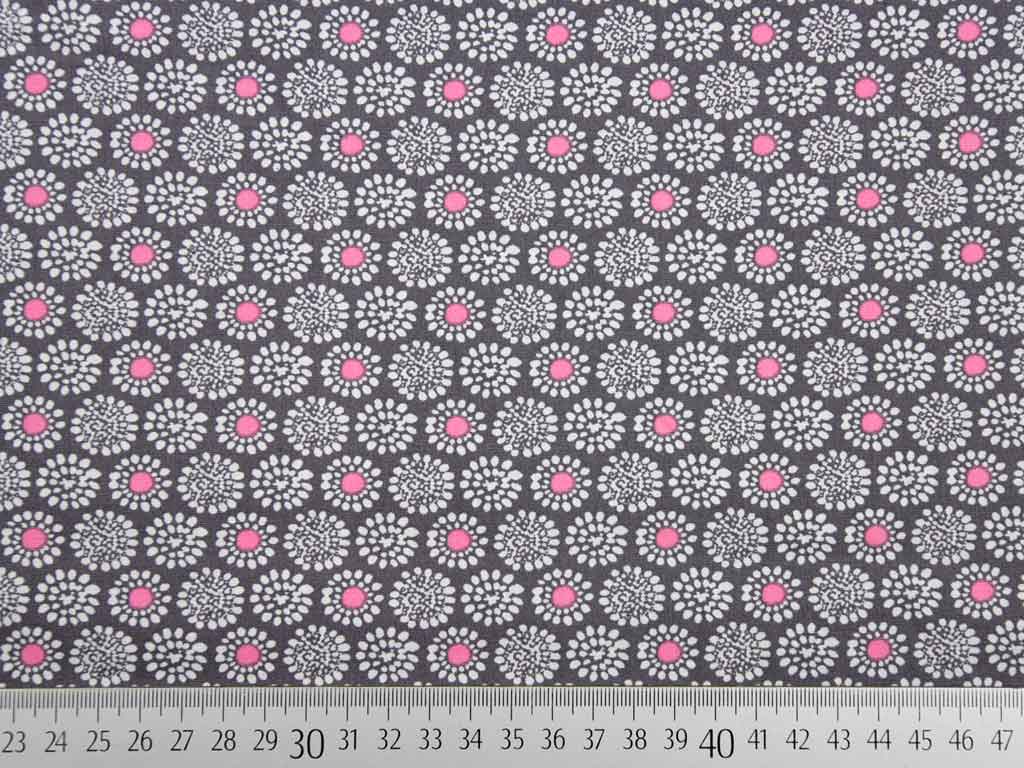 Ein toller Baumwollstoff in schlamm mit weiß-rosa Rädchenblumen.
