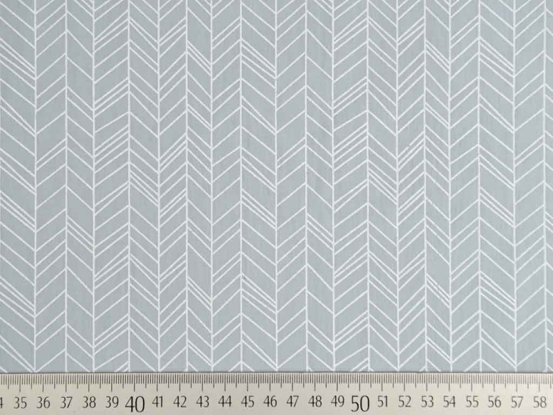 Ein weicher, hellgrauer Baumwollstoff (Popeline) mit einem weißen unregelmäßigen Fischgrätmuster, das an Pfeile erinnert.