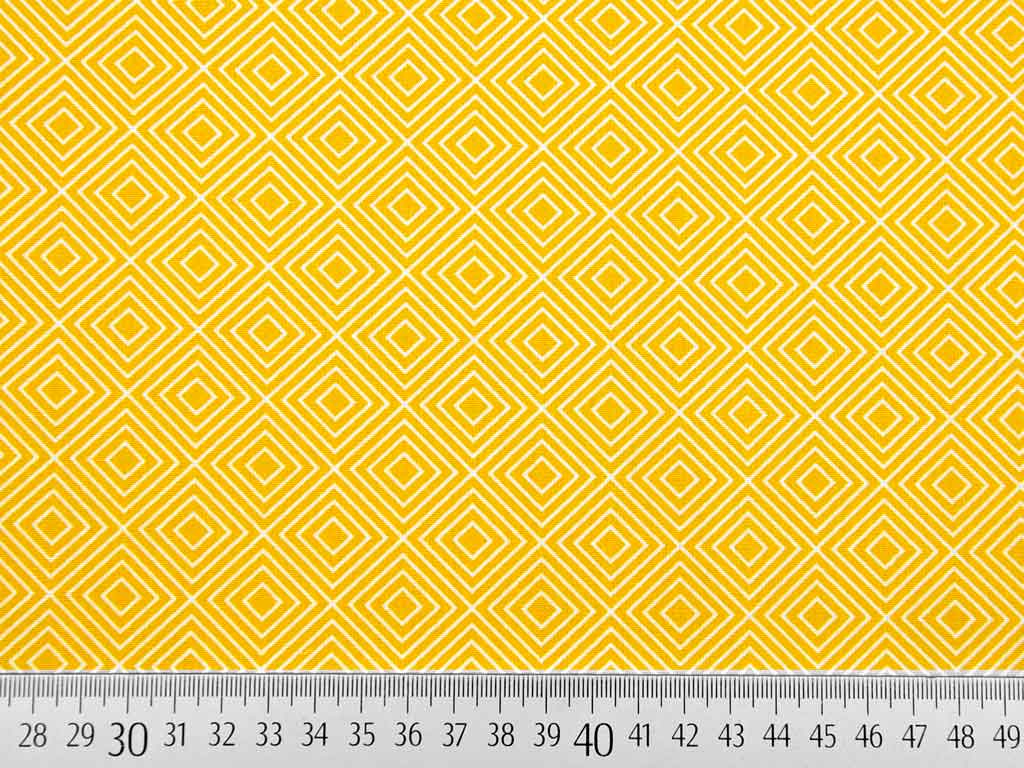 Ein glatter Baumwollstoff in gelb mit weißen Quadraten.