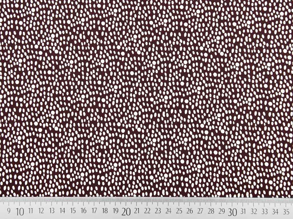 Ein weicher Baumwollstoff in dunkelbraun mit kleinen Tropfen in ecrue.