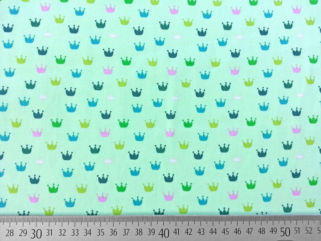 Ein wunderschöner Baumwollstoff in mint mit kleinen Kronen. Ein toller Stoff für die kleine Prinzessin.