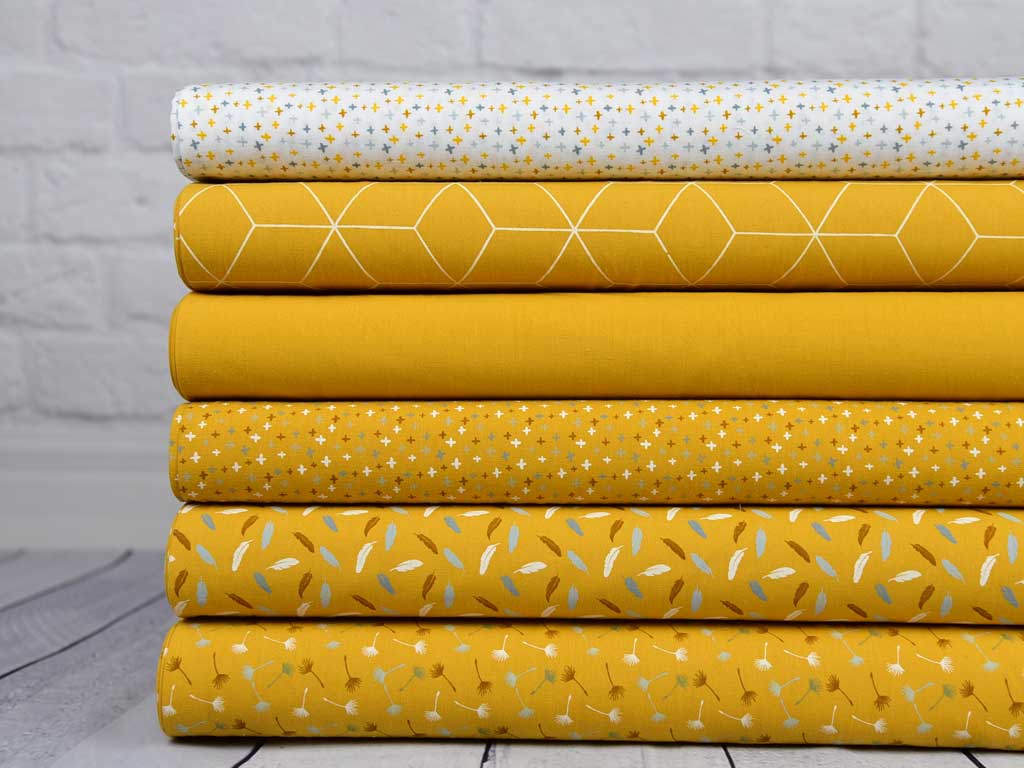 Ein schöner Baumwollstoff (Popelin) in ocker mit kleinen, filigranen Kreuzen in weiß, grau, dunkelgelb.
