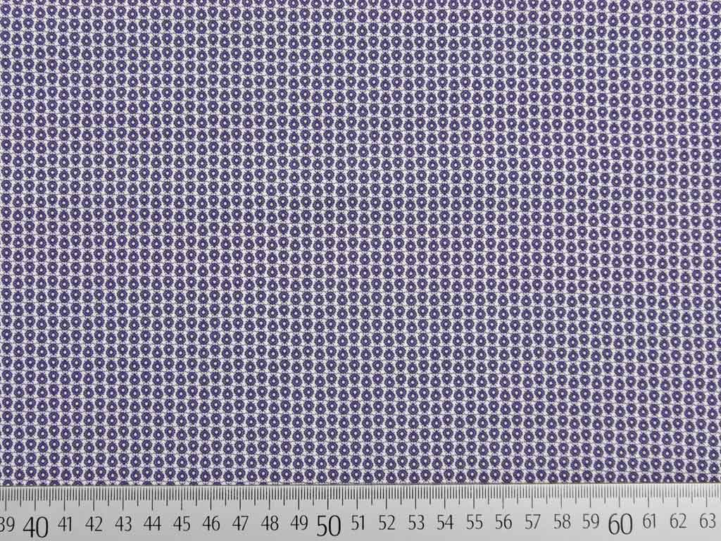 Ein feiner und sehr weicher Baumwollstoff in weiß mit kleinen dunkelblauen Tropfen.