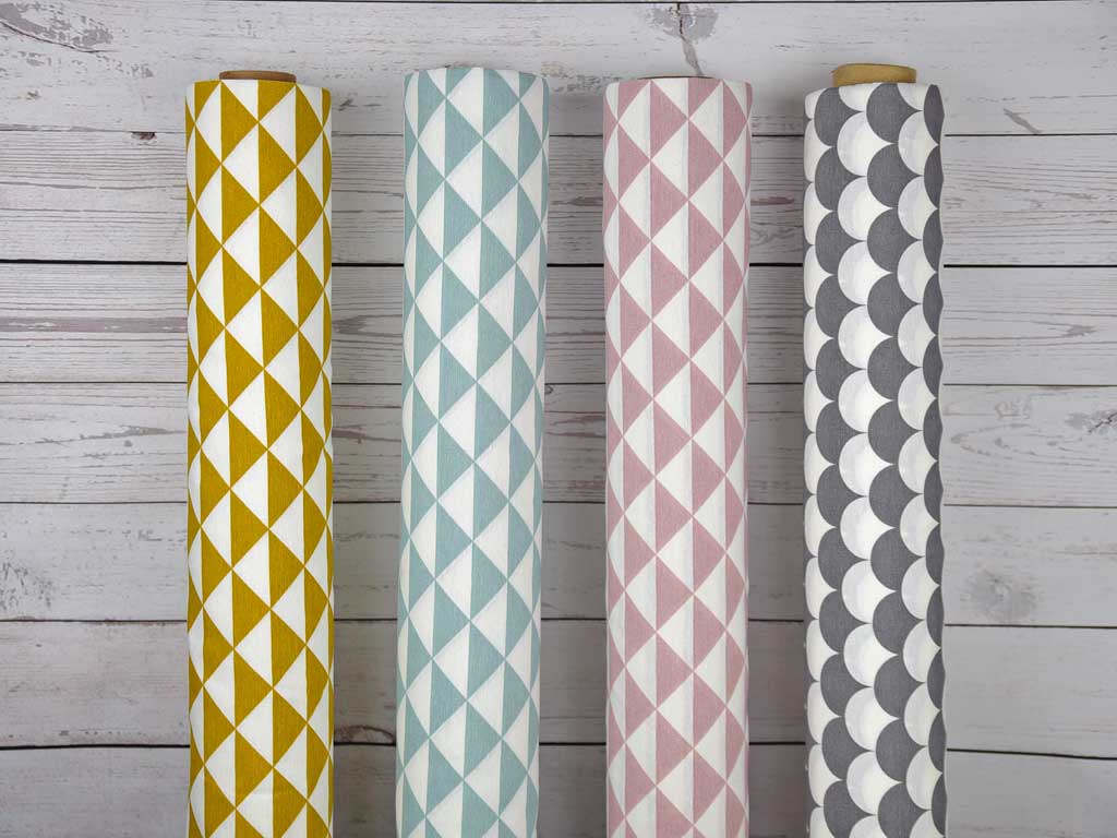 Ein etwas dickerer und festerer Stoff (Dekostoff) mit grauen und weißen Dreiecken. Einfach super cool!