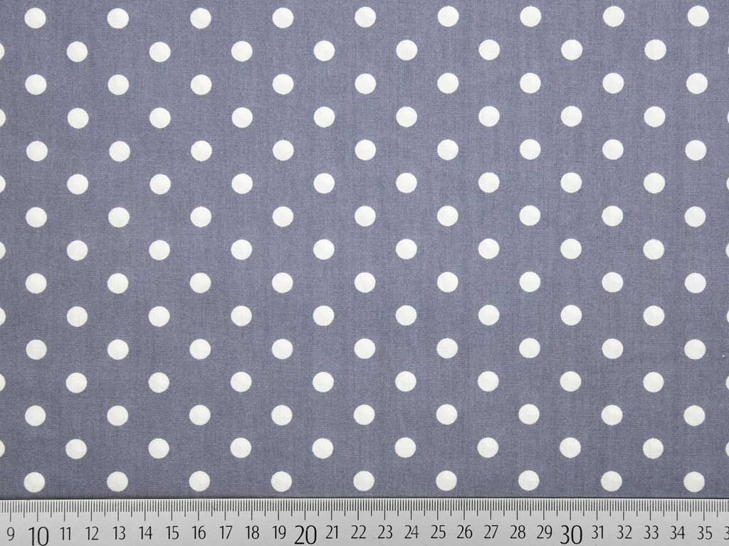 Ein glatter Baumwollstoff in grau mit 7 mm großen weißen Punkten.