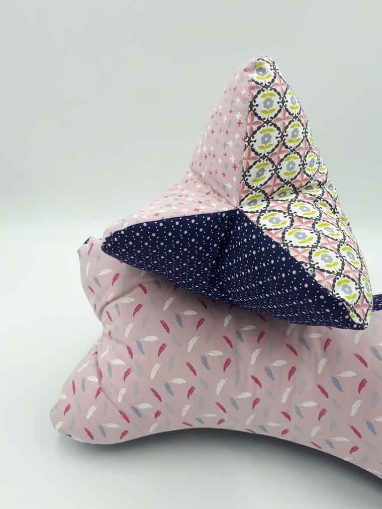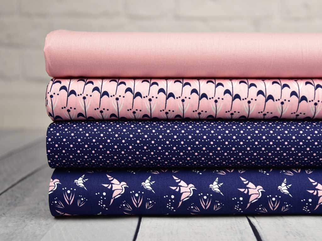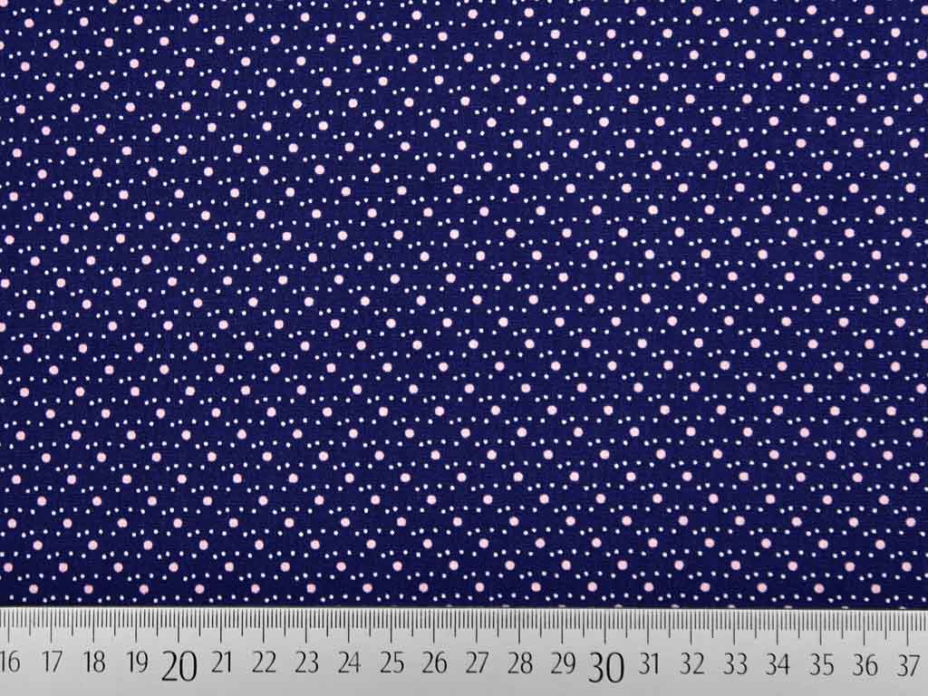 Ein weicher Baumwollstoff (Popelin) in dunkelblau mit rosa Punkten (2mm) und weißen Pünktchen (1mm).