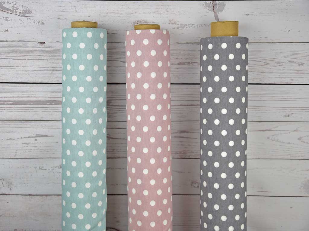 Ein etwas dickerer und festerer Stoff (Dekostoff) in grau mit weißen Punkten. Einfach total schön!
