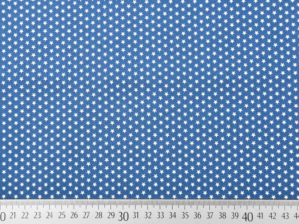 Ein glatter, indigo blauer Baumwollstoff mit kleinen weißen Sternen.