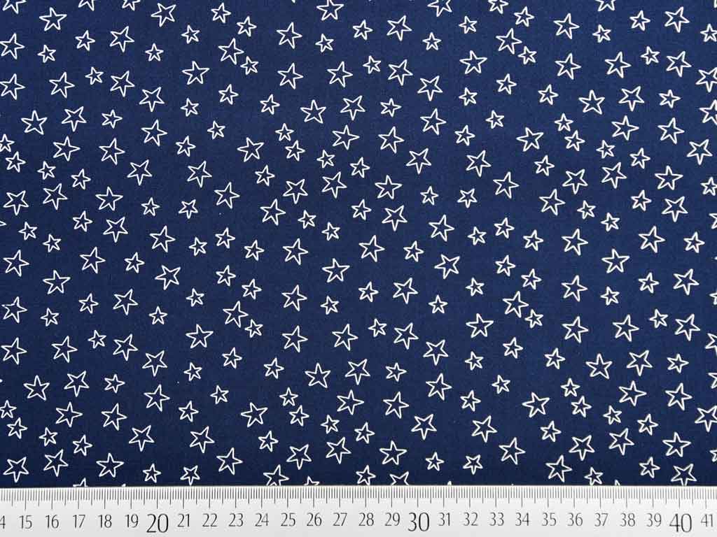 Ein glatter Baumwollpopelin in dunkelblau mit kleinenm weißen Sternen als Kontur.