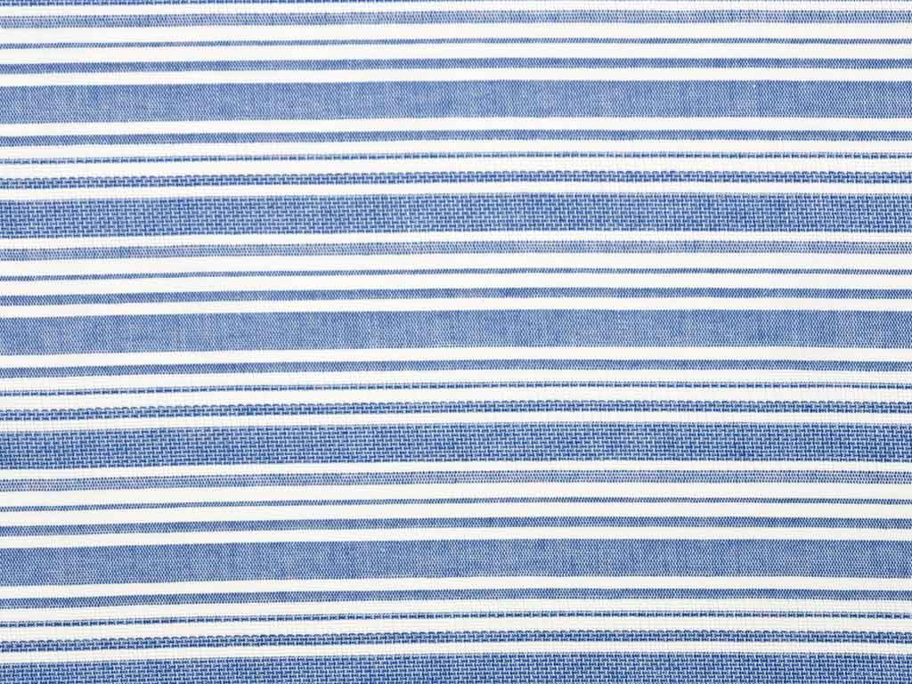 Ein leichter Baumwollstoff mit gemusterten Streifen in hellblau und weiß.