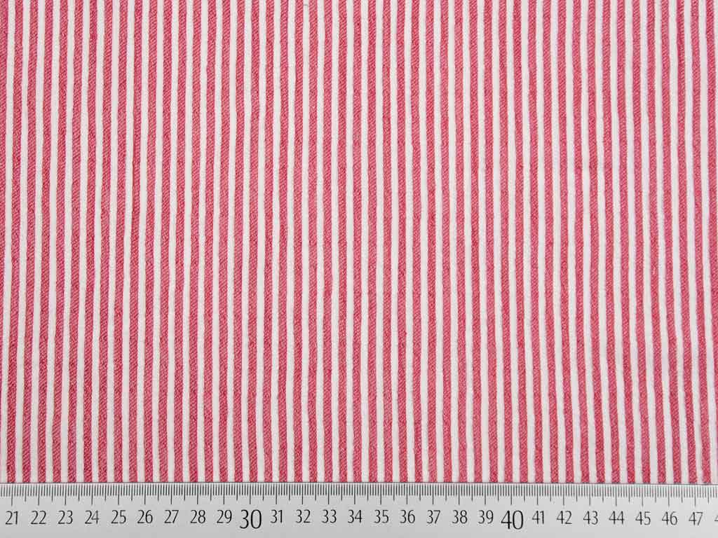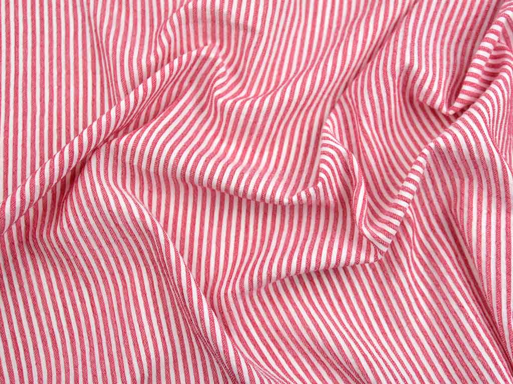 Ein leicht elastischer weicher Crinkle-Blusenstoff mit roten und weißen Streifen. Die Streifen sind ca. 3mm breit.