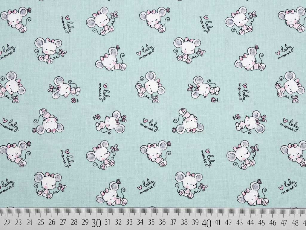Ein weicher Baumwollstoff (Popelin) in mint mit kleinen, süßen Mäusen.