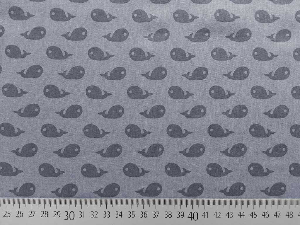 Ein toller Baumwollstoff in grau mit kleinen dunkelgrauen Walen.