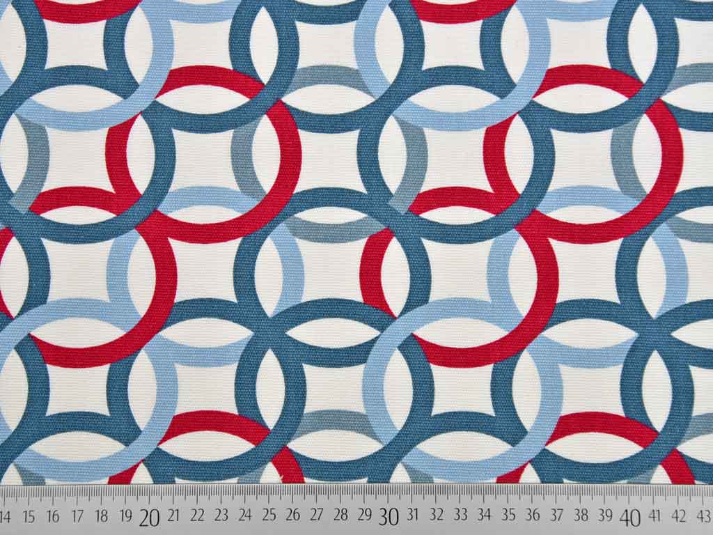 Ein wunderschöner Canvas in weiß mit grafischen Ringen in rot, hellblau und rauchblau.