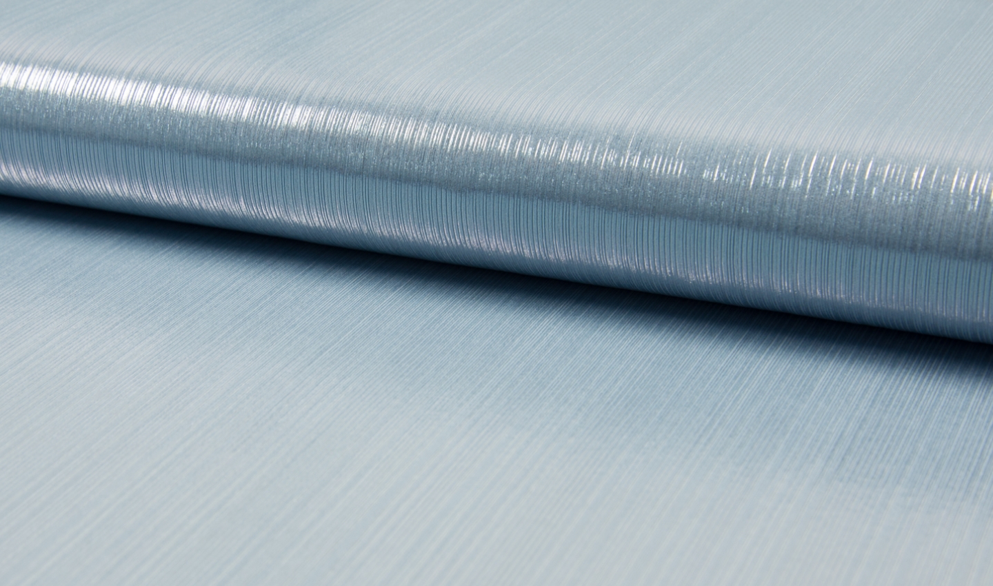 Ein elastischer Stoff in eisblau mit silberfarbigem Glitzer. Der Glitzer verläuft in Laufrichtung und bewirkt einen Streifenlook. Der Stoff ist weich und fällt locker.