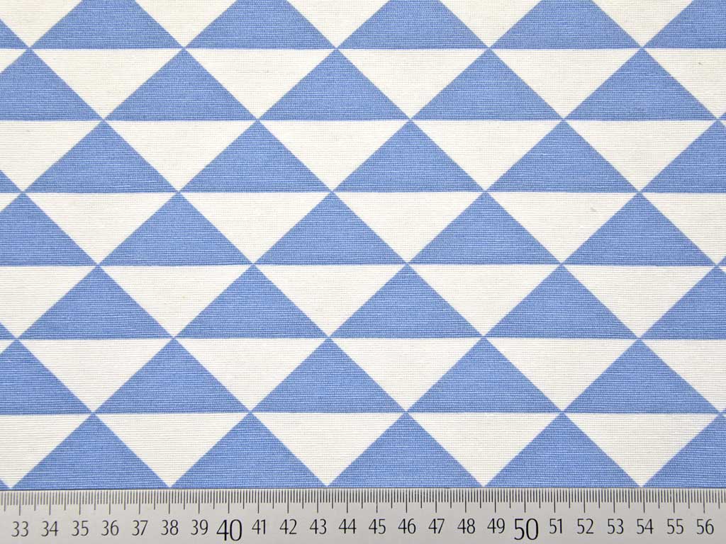 Ein etwas dickerer und festerer Stoff (Dekostoff) mit jeansblau und weißen Dreiecken. Einfach super cool!