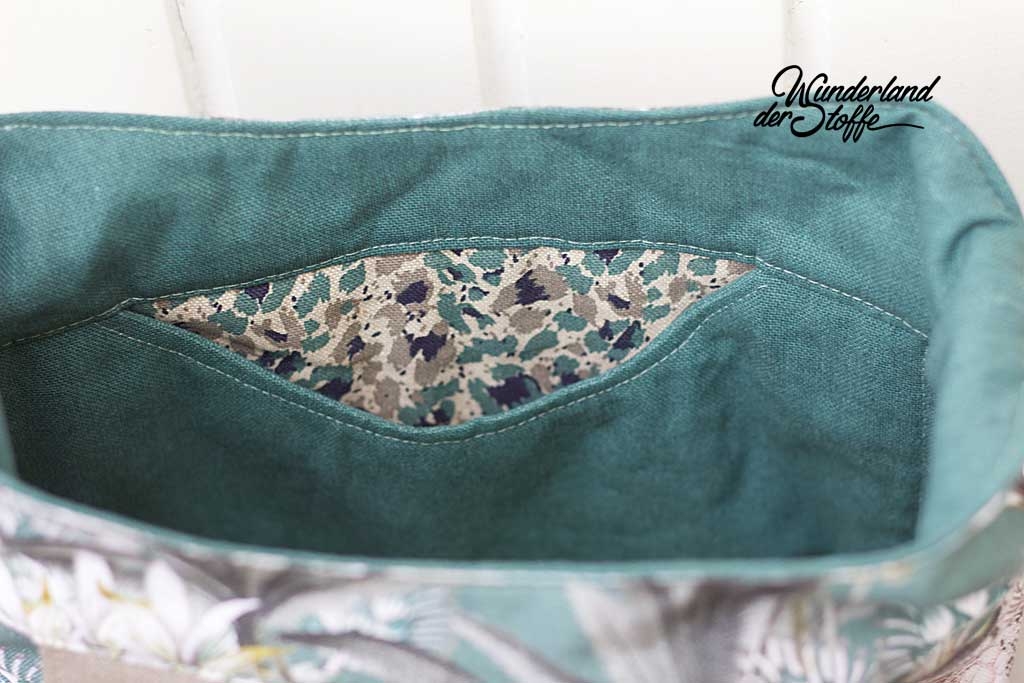 Ein etwas dickerer und festerer Stoff in grünpetrol meliert (Leinenlook) .
