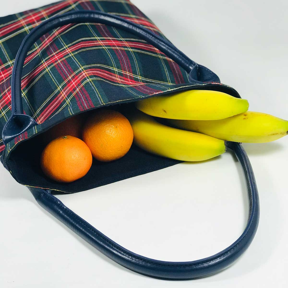 Ein festerer Webstoff (Dekostoff) mit klassischem Schottenkaro in ecrue, rot und grün.