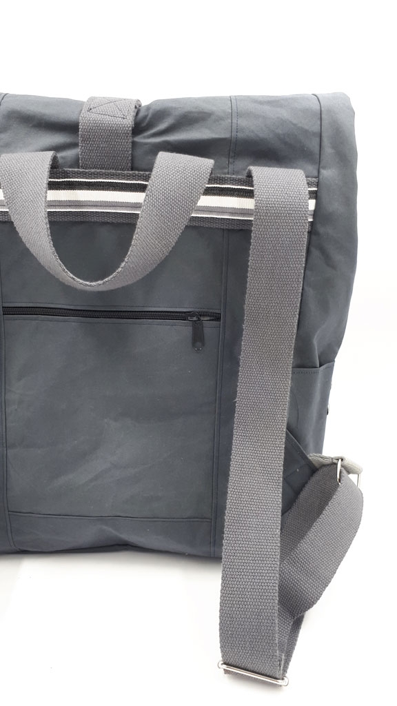 Der grauer Dry Oilskin Stoff ist ein hochwertiger Baumwollstoff mit einer leichten Wachsbeschichtung. Der gewachste Baumwollstoff hat durch ein spezielles Trocknungsverfahrung einen trockenen Griff und wirkt trotz Beschichtung wie Naturbaumwolle. Er ist wasserabweisend und trotzdem atmungsaktiv. Bei der Verarbeitung entstehen Knickfalten, die zum typischen Used Look von Dry Oilskin dazugehören und keinen Reklamationsgrund darstellen.