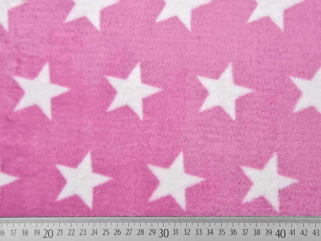 Ein super weicher, hellpinker Flanell Jacquard (Wellnessfleece) mit weißen Sternen.