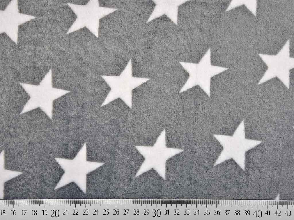 Ein super weicher, mittelgrauer Flanell Jacquard (Wellnessfleece) mit weißen Sternen.