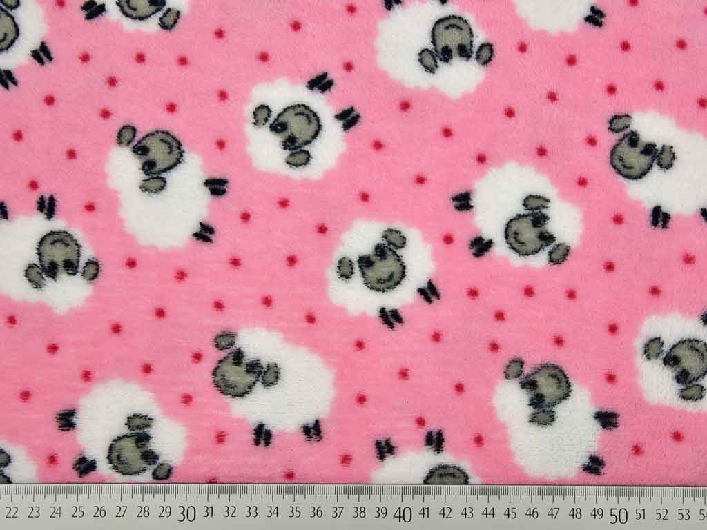 Ein super weicher rosa Wellnessfleece mit weißen Schafen und pinken Pünktchen. Einfach so süß!