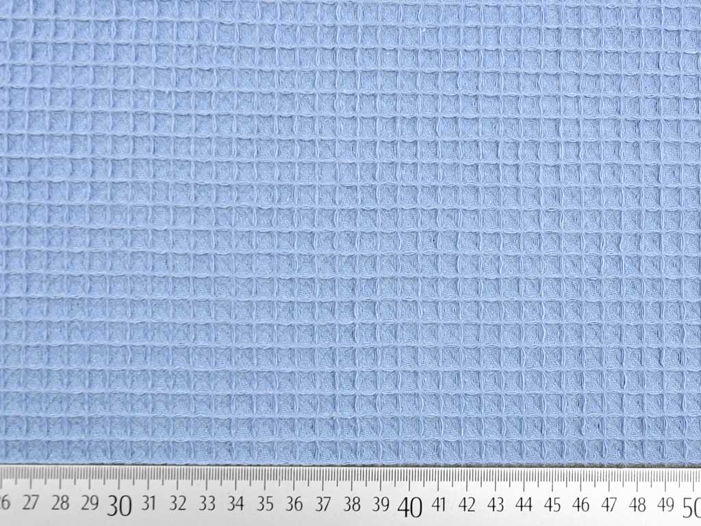 Ein blauer Frottee Stoff mit Waffelmuster in dusty blue. Die Vorder- und Rückseite sehen gleich aus.