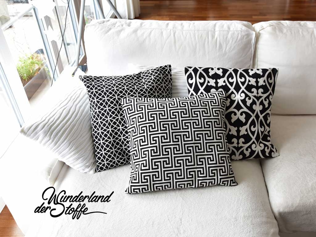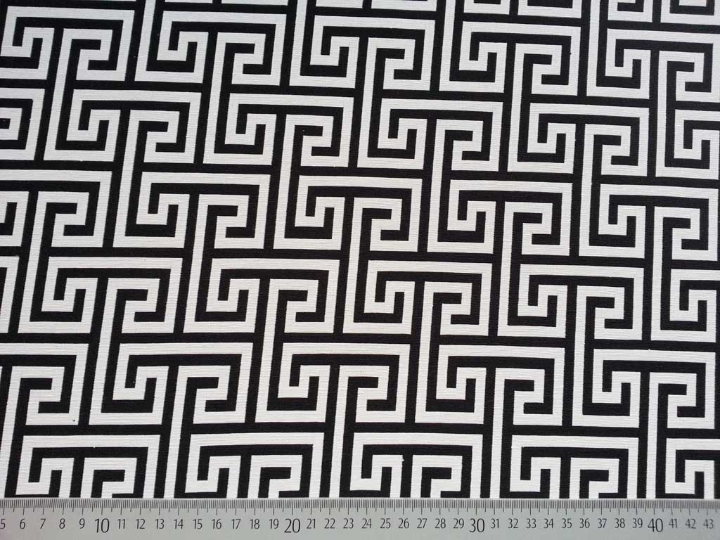 Ein wunderschöner Jacquardstoff als Doubleface mit schwarz-weissem Labyrinth Muster. Vorder- und Rückseite sind gleich.