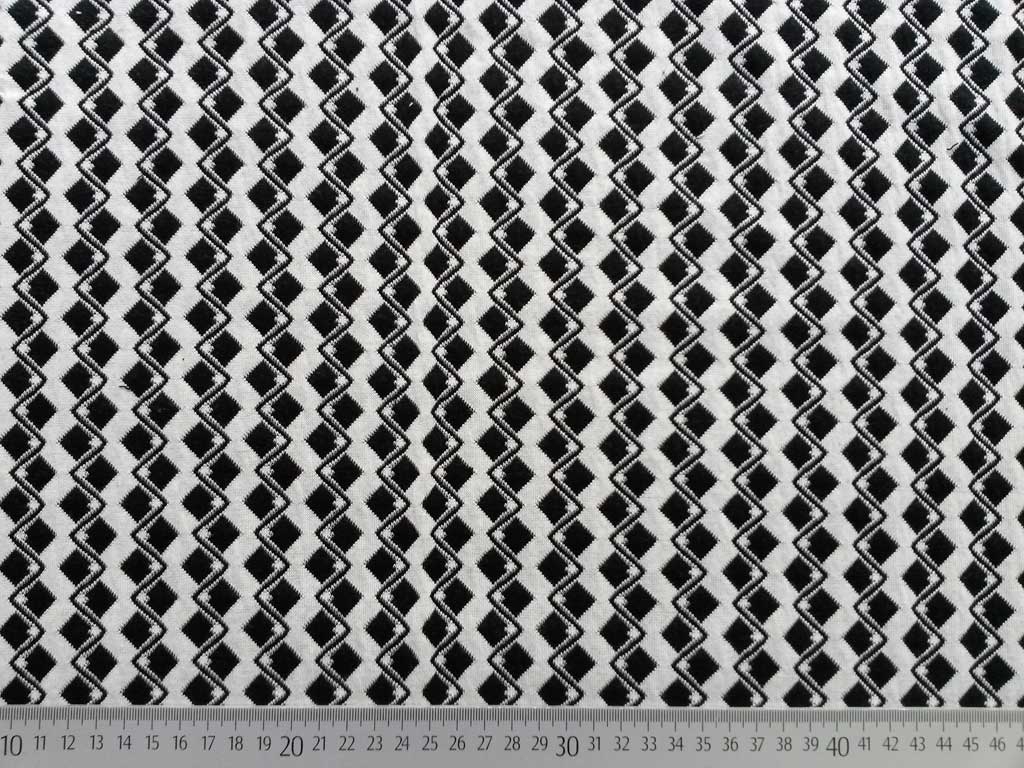 Ein trendiger Jacqard Jersey mit zweifachem Zickzackmuster in cremeweiss und schwarz.