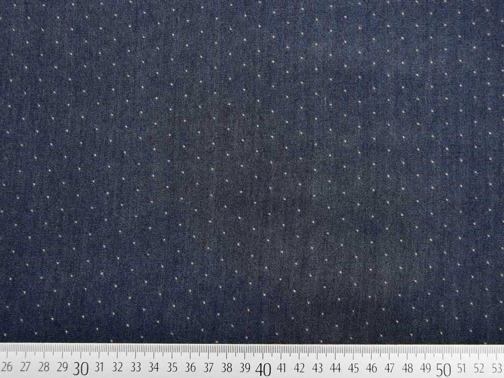 Ein weicher und fließender, dunkelblauer Chambray aus Tencel mit kleinen weißen Punkten.