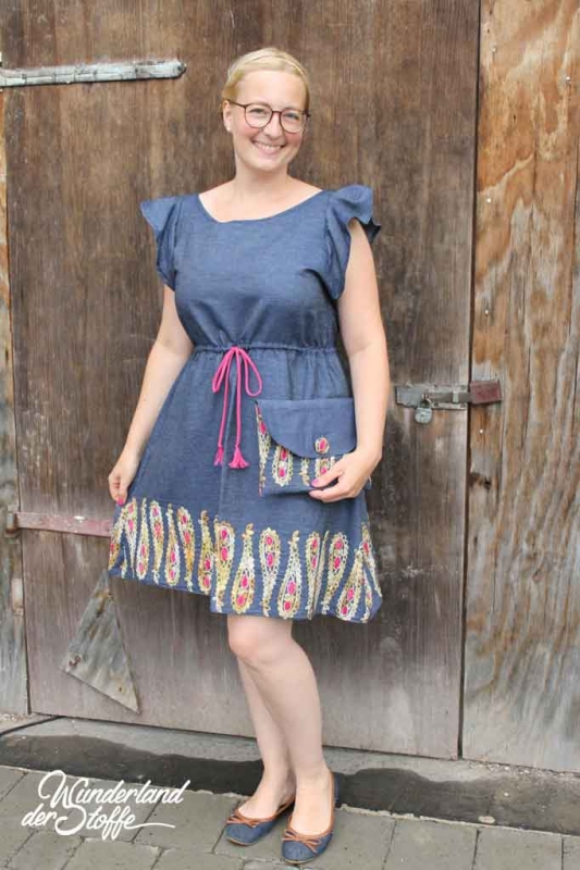 Die Bordüre läuft entlang einer Webkante, der Rest der Stoffbreite ist uni. Einfach wunderschön!