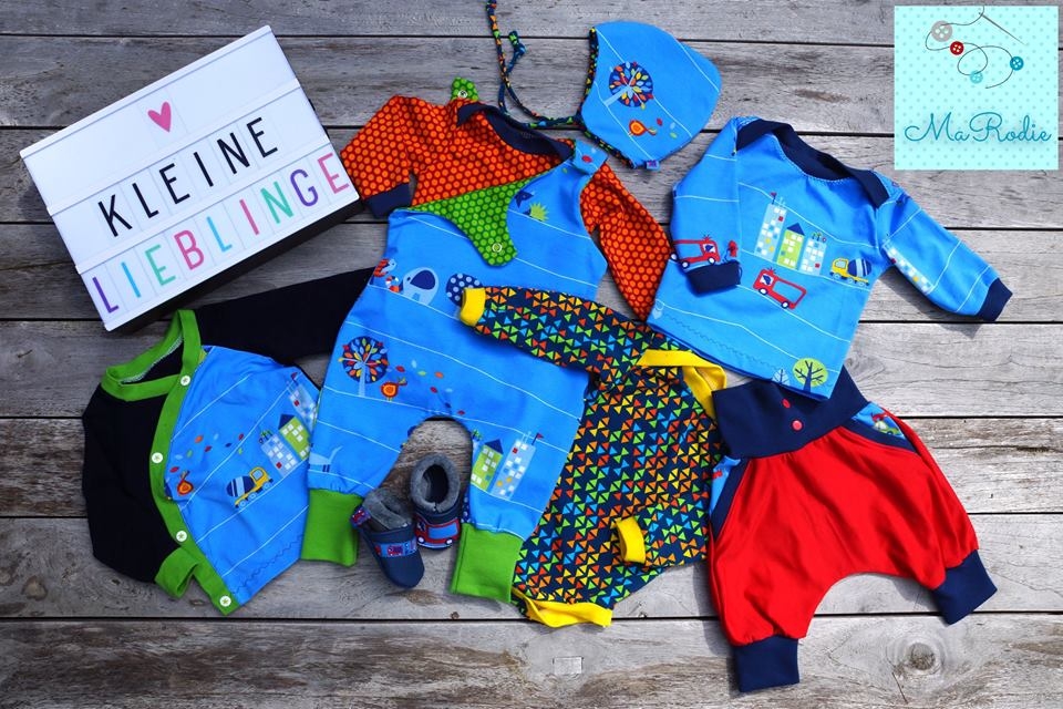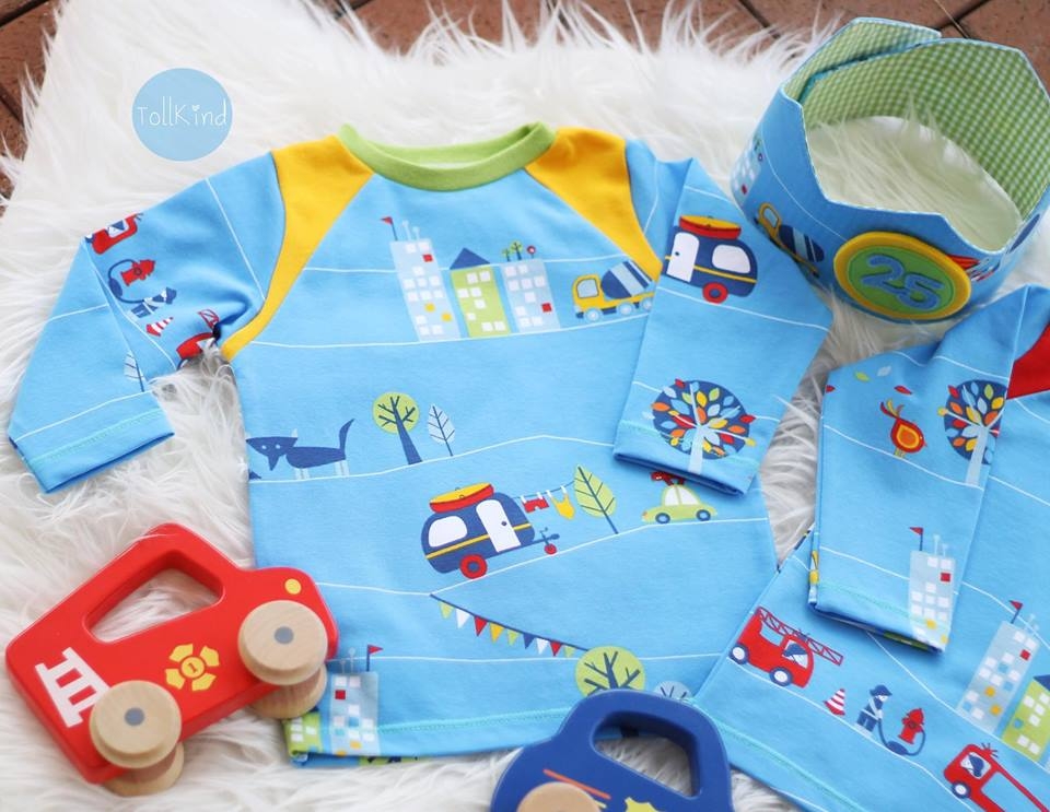 Ein weicher hellblauer Baumwolljersey aus dem Hause Blaubeerstern mit dem Namen "kleine Lieblinge" mit den beliebtesten Blaubeerstern Motiven der letzten Jahre.