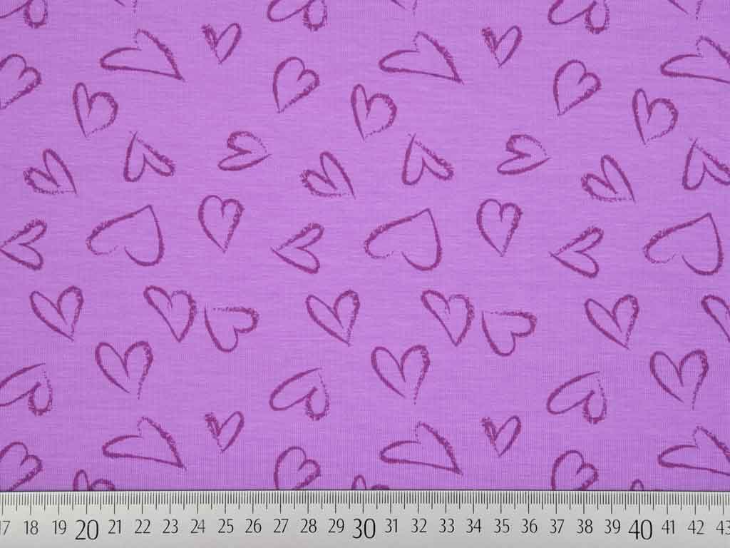Ein weicher, helllila Baumwolljersey mit lila Herzen.