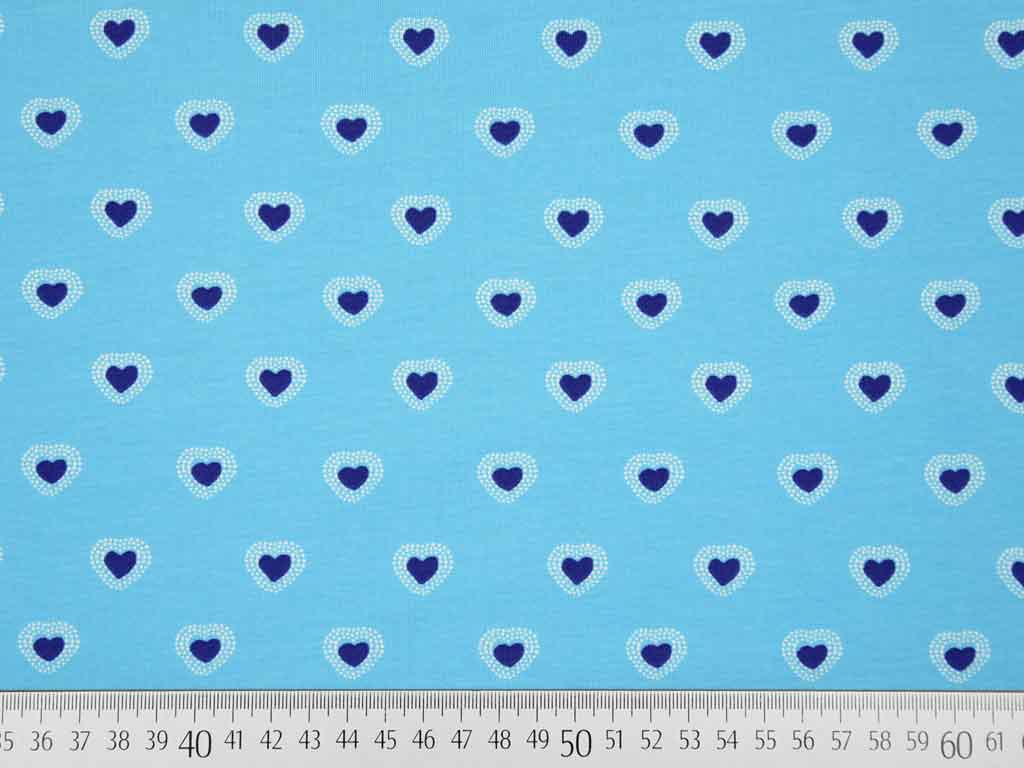 Ein niedlicher Jersey in türkis mit dunkelblauen Herzen.