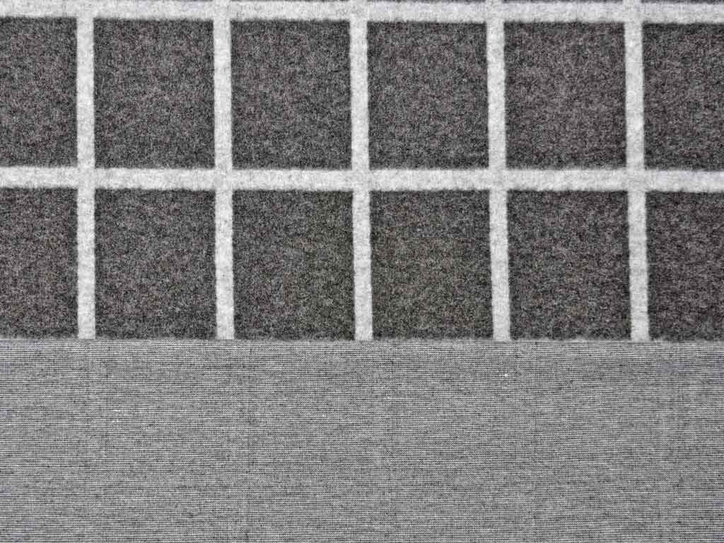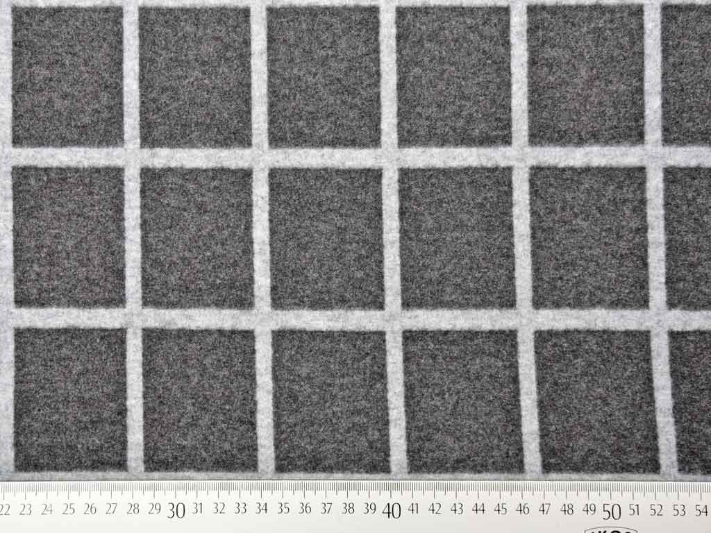 Ein elastischer, melierter Jacquard Jersey in anthrazit mit hellgrauem Karomuster/Gitternetz Muster. Die Oberseite ist angeraut und hat somit einen wunderbar weichen, wolligen Griff.