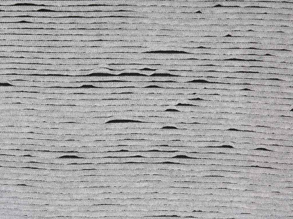 Ein schwarzer elastischer Jersey mit grauen Lamellen. Der Stoff ist luftig leicht und schmiegt sich gut an.