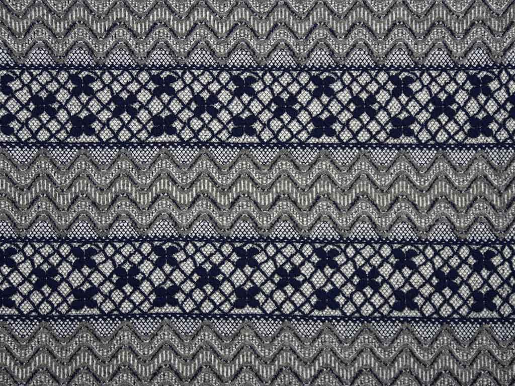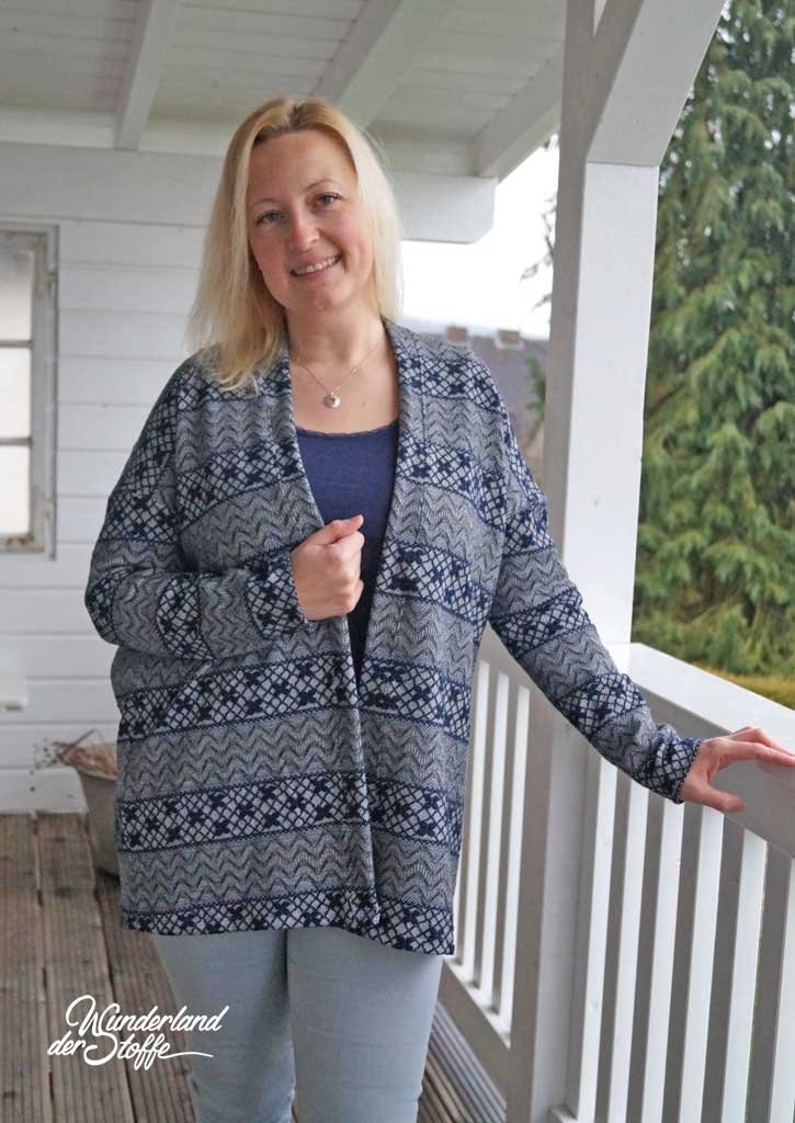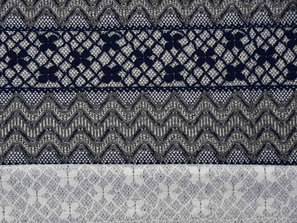 Ein toller Jacquard mit Streifen und Bordüren in grau, dunkelblau und hellgrau.